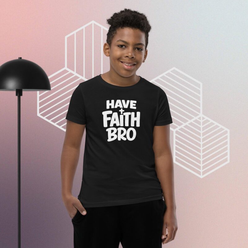 Encourage faith and positivity with this Have Faith Bro Christian youth t-shirt. Designed with a fun and modern style, it reminds young believers to trust God through every challenge.