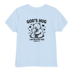 Wrap your little one in comfort and faith with this God’s Hug Christian toddler shirt. Inspired by the warmth of God’s love, this design reminds children that they are always surrounded by His care and protection. A sweet message of reassurance and faith for everyday adventures.