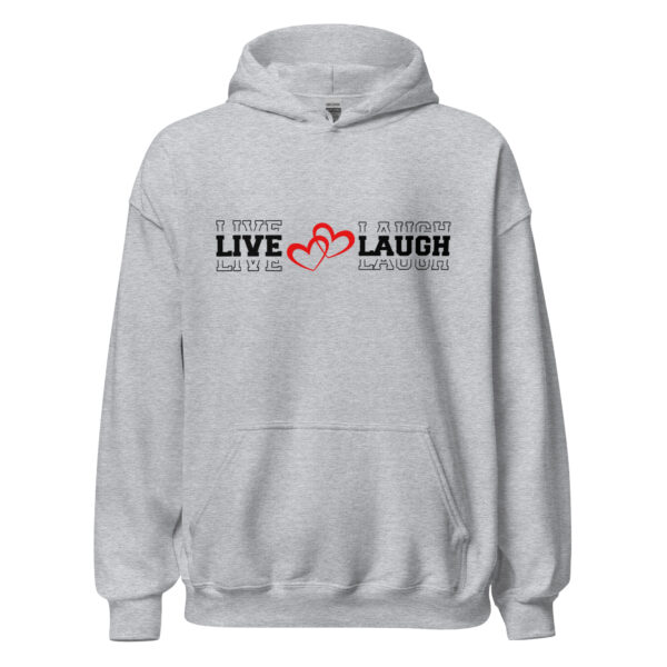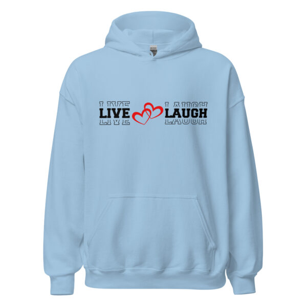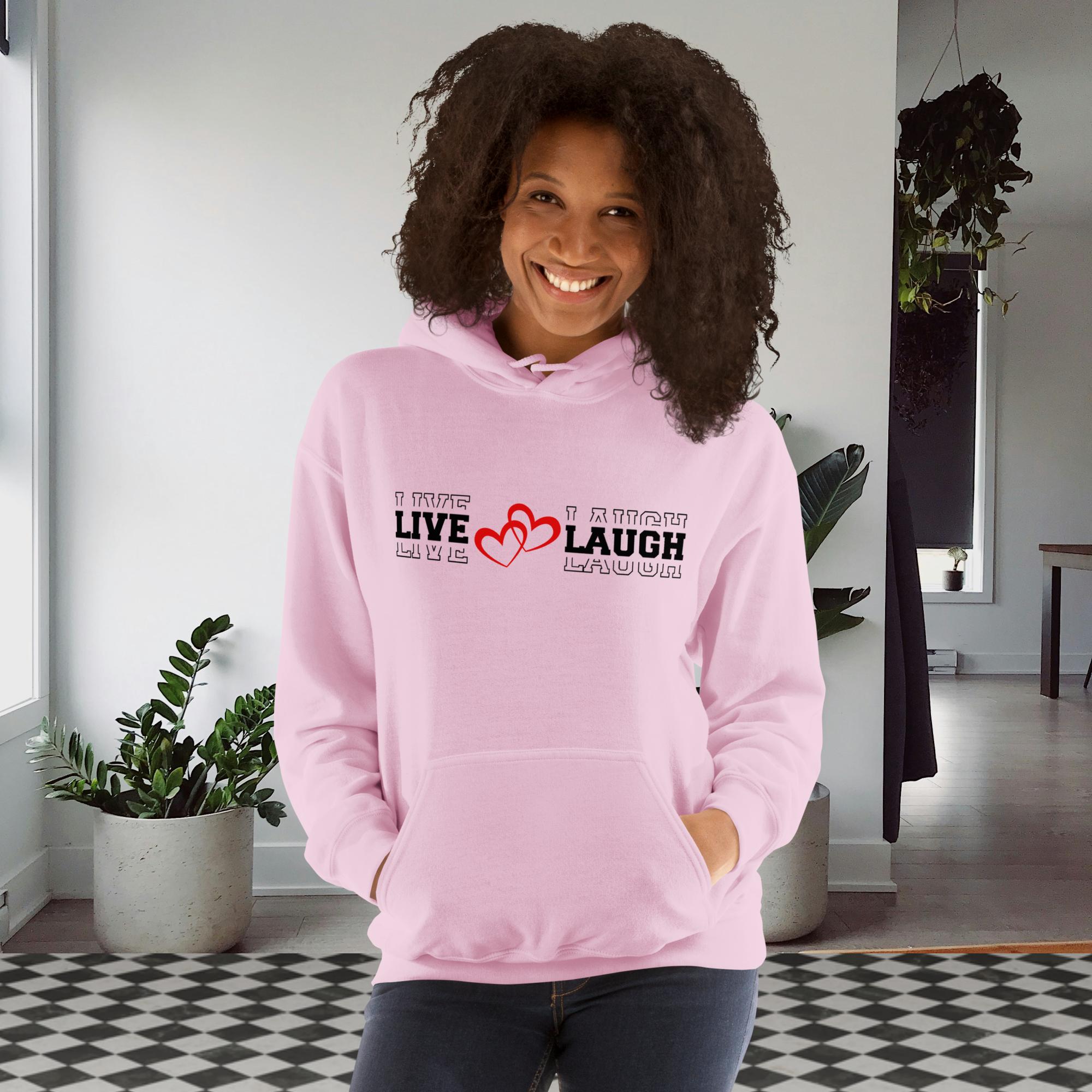 The Live Love Laugh Christian women’s hoodie reflects the joy that comes from living a life rooted in Christ. This uplifting piece of inspirational Christian clothing encourages believers to embrace faith, love others, laugh often, and find joy in every blessing God provides.