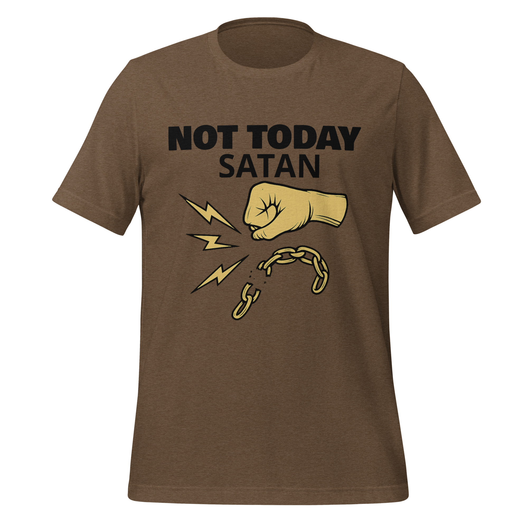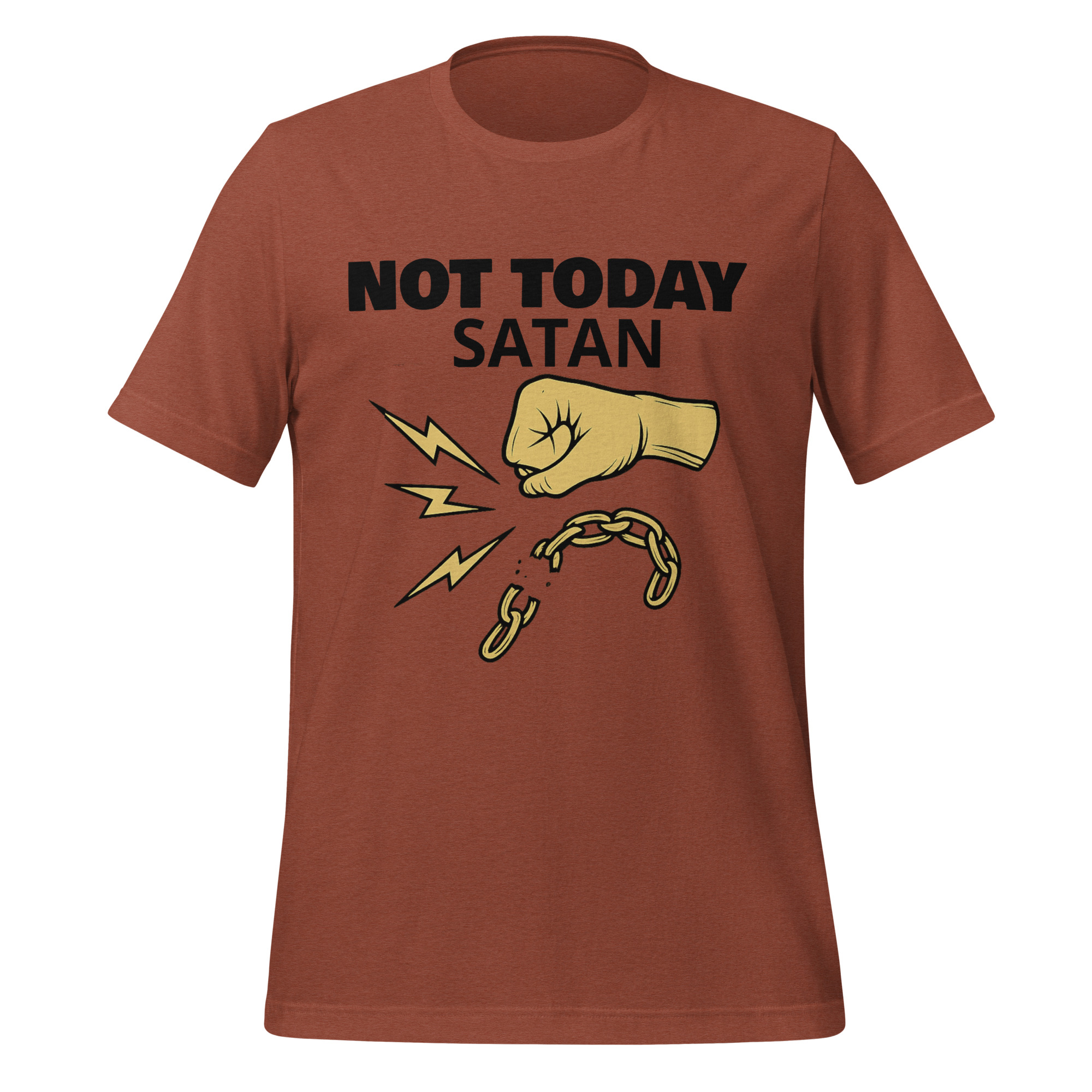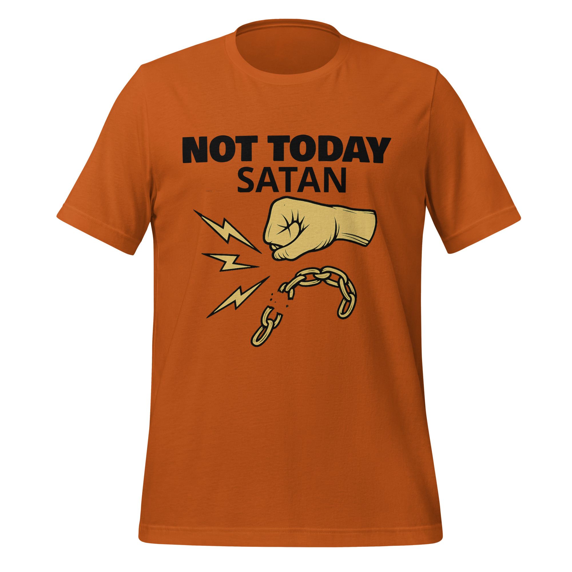 Make a bold statement of faith and resilience with our “Not Today Satan” T-shirt. This shirt is more than just a piece of clothing—it’s a declaration that you’re standing firm against negativity, temptation, and life’s challenges. Inspired by the words of James 4:7, “Resist the devil, and he will flee from you,” this design encourages you to walk confidently in faith.
