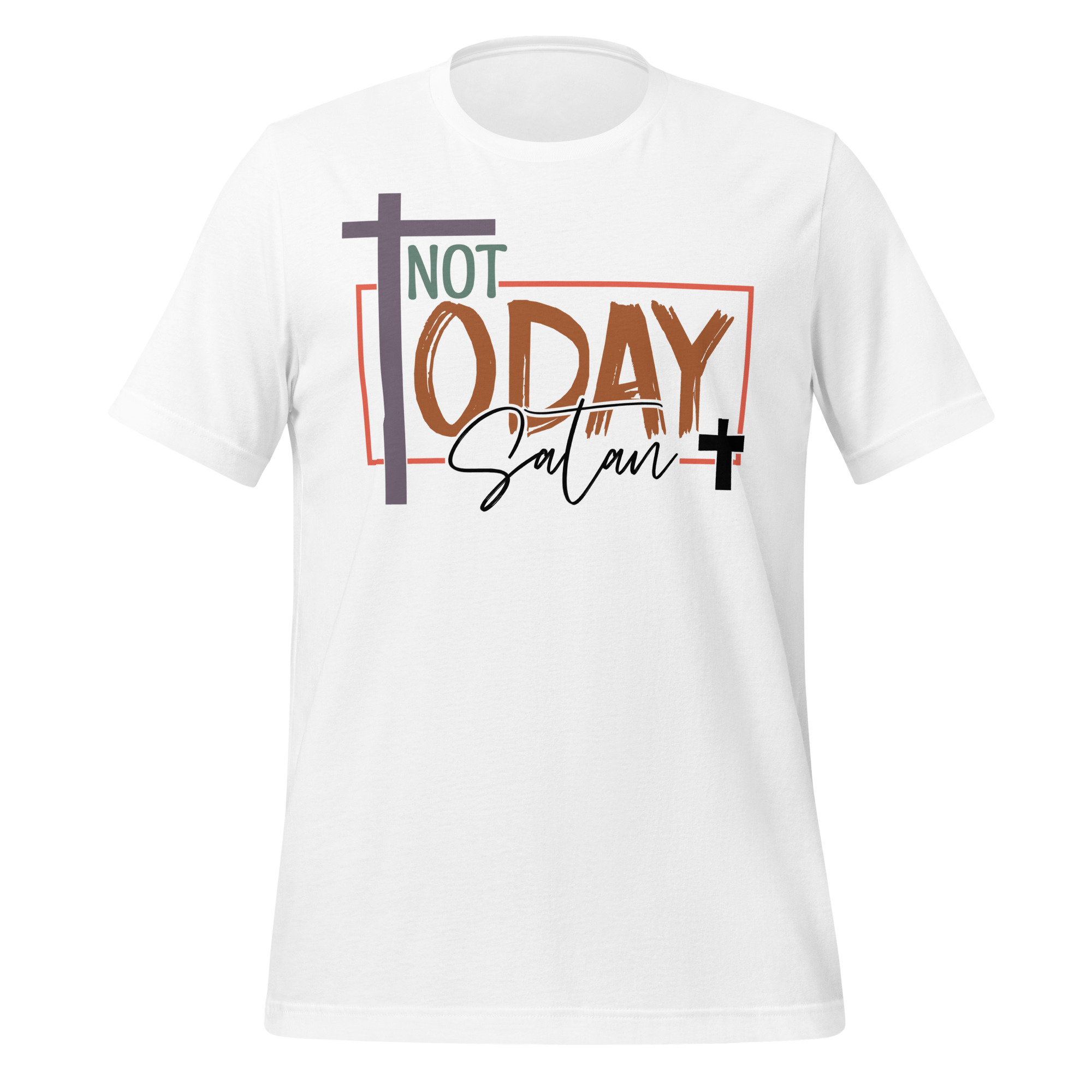 Make a bold statement of faith and resilience with the “Not Today, Satan” T-Shirt. Perfect for believers who stand firm against negativity and temptation, this stylish tee reminds you and those around you to stay strong in the face of challenges. Wear it with confidence, knowing you’re declaring victory over the enemy every day.
