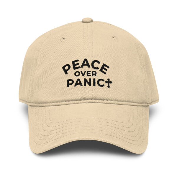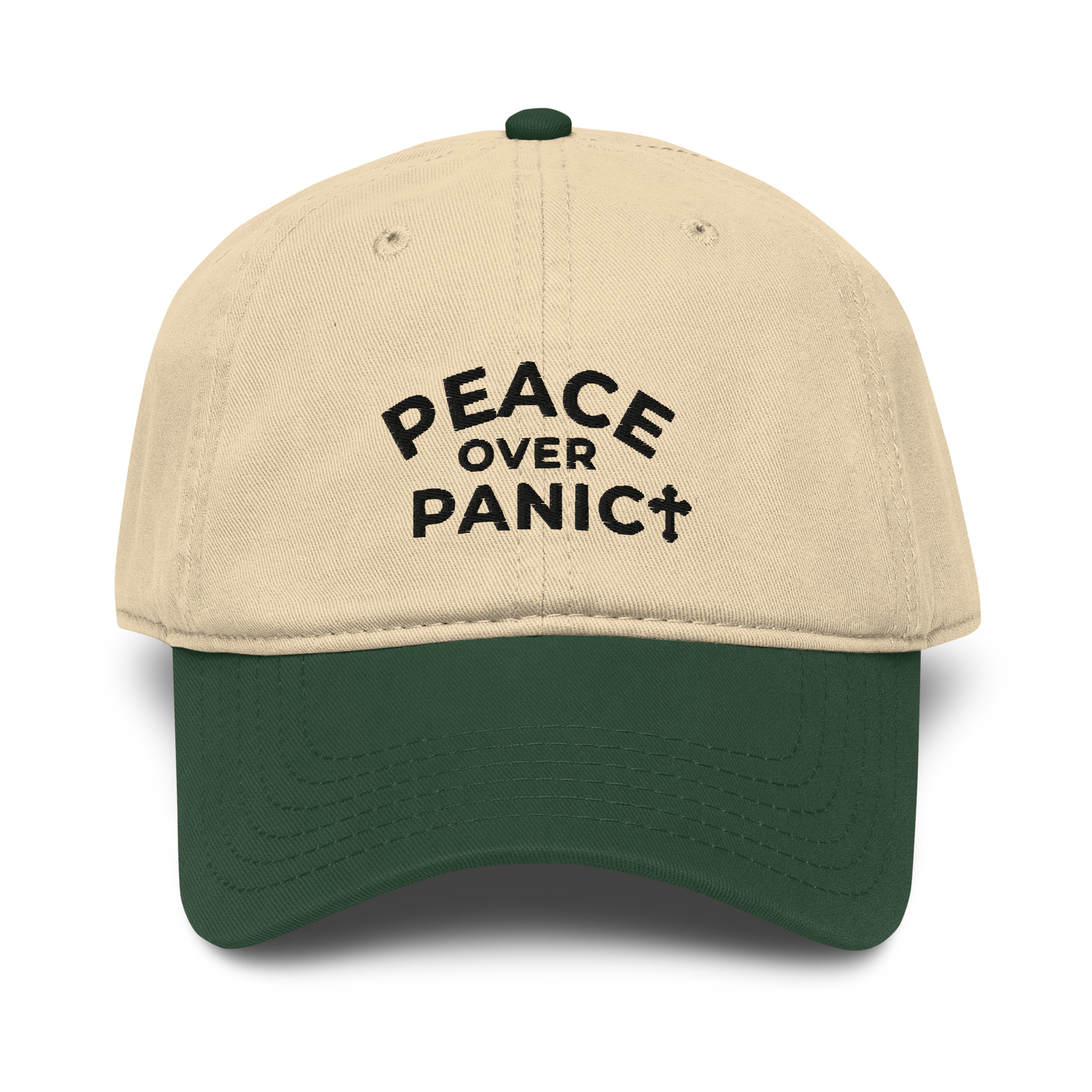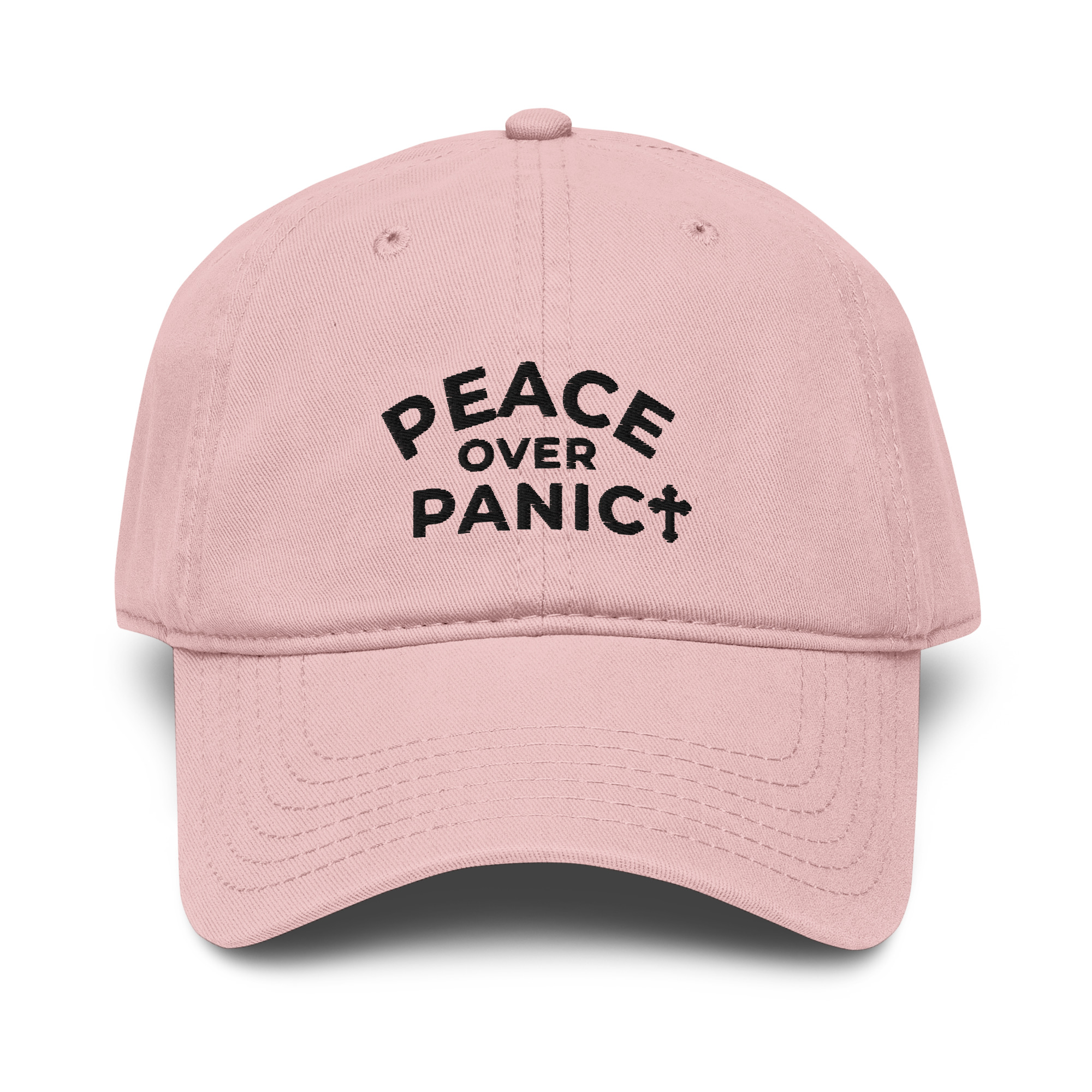 The Peace Over Panic baseball cap is a comforting and encouraging design that promotes trust in God during uncertain times. This hope-filled and faith-based baseball cap serves as a daily reminder to choose peace over fear.