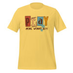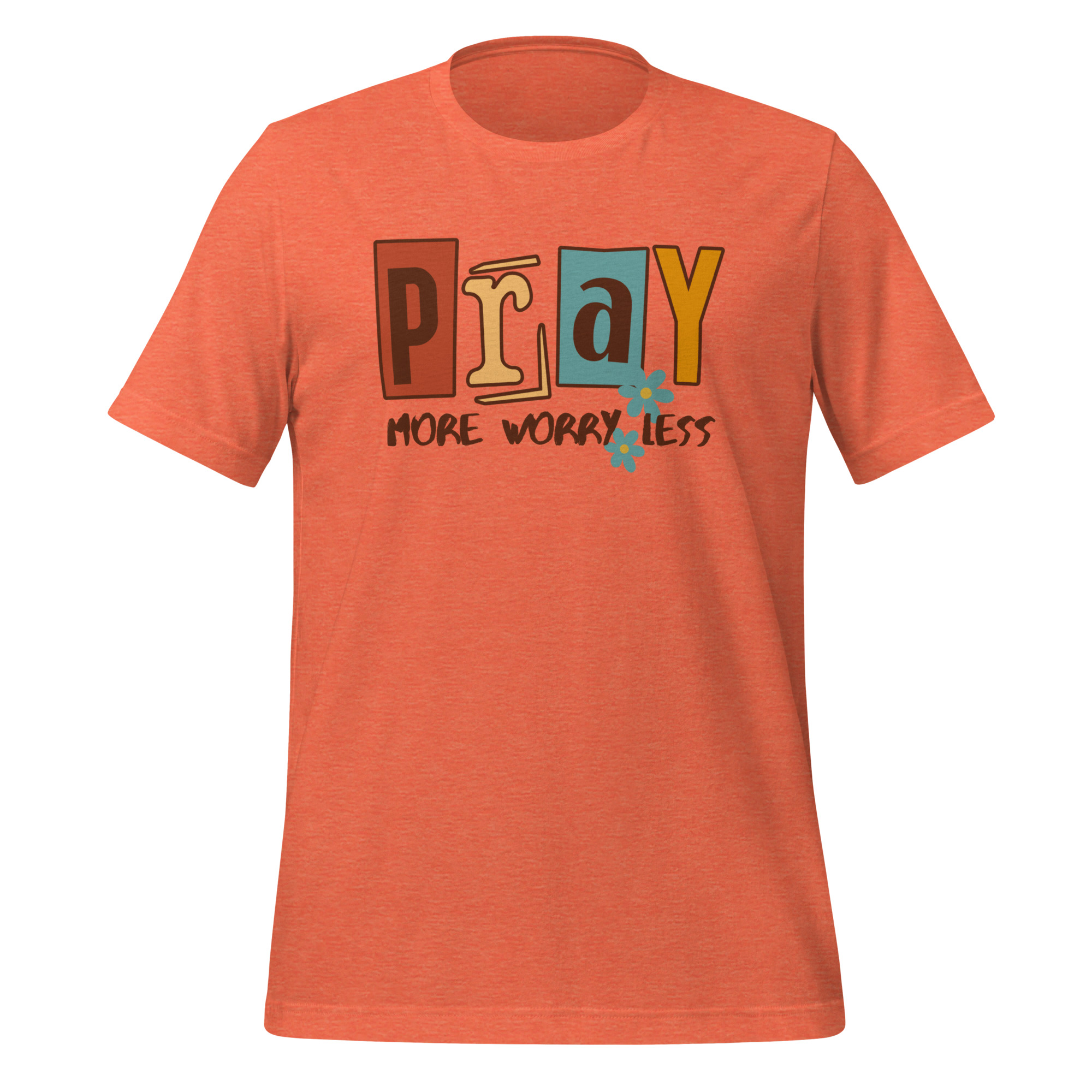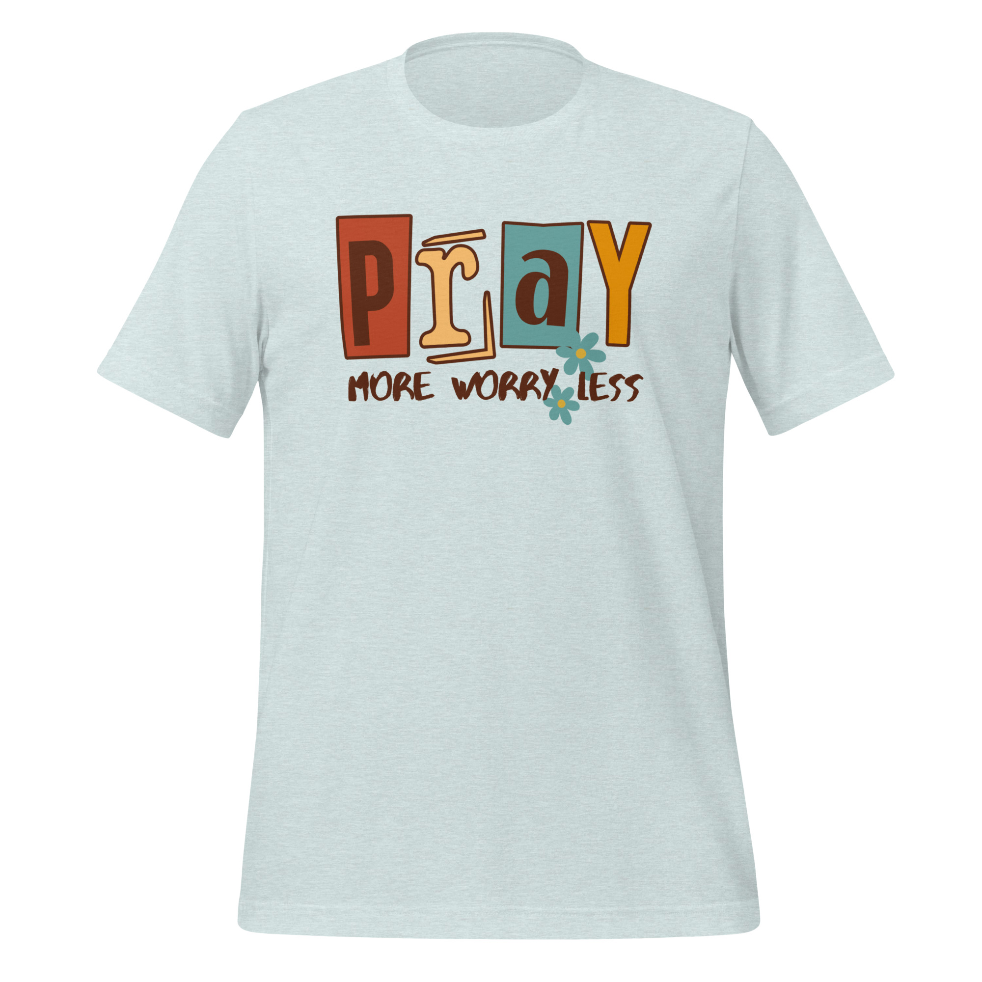 This Pray More, Worry Less Christian women’s t-shirt serves as a wearable reminder to stay rooted in faith and release your worries to Him. Inspired by scriptures like “Do not be anxious about anything, but in every situation, by prayer and petition, with thanksgiving, present your requests to God” (Philippians 4:6).