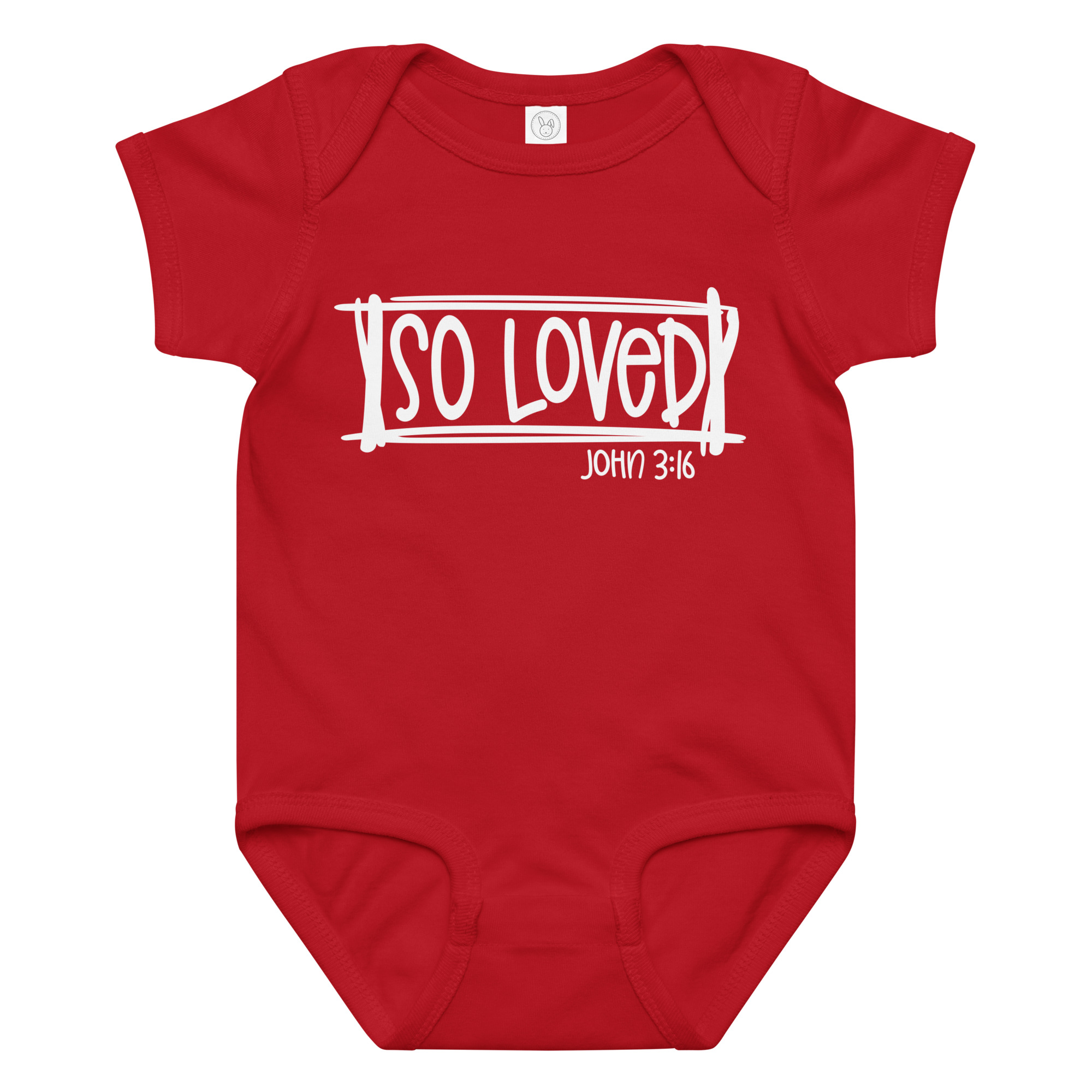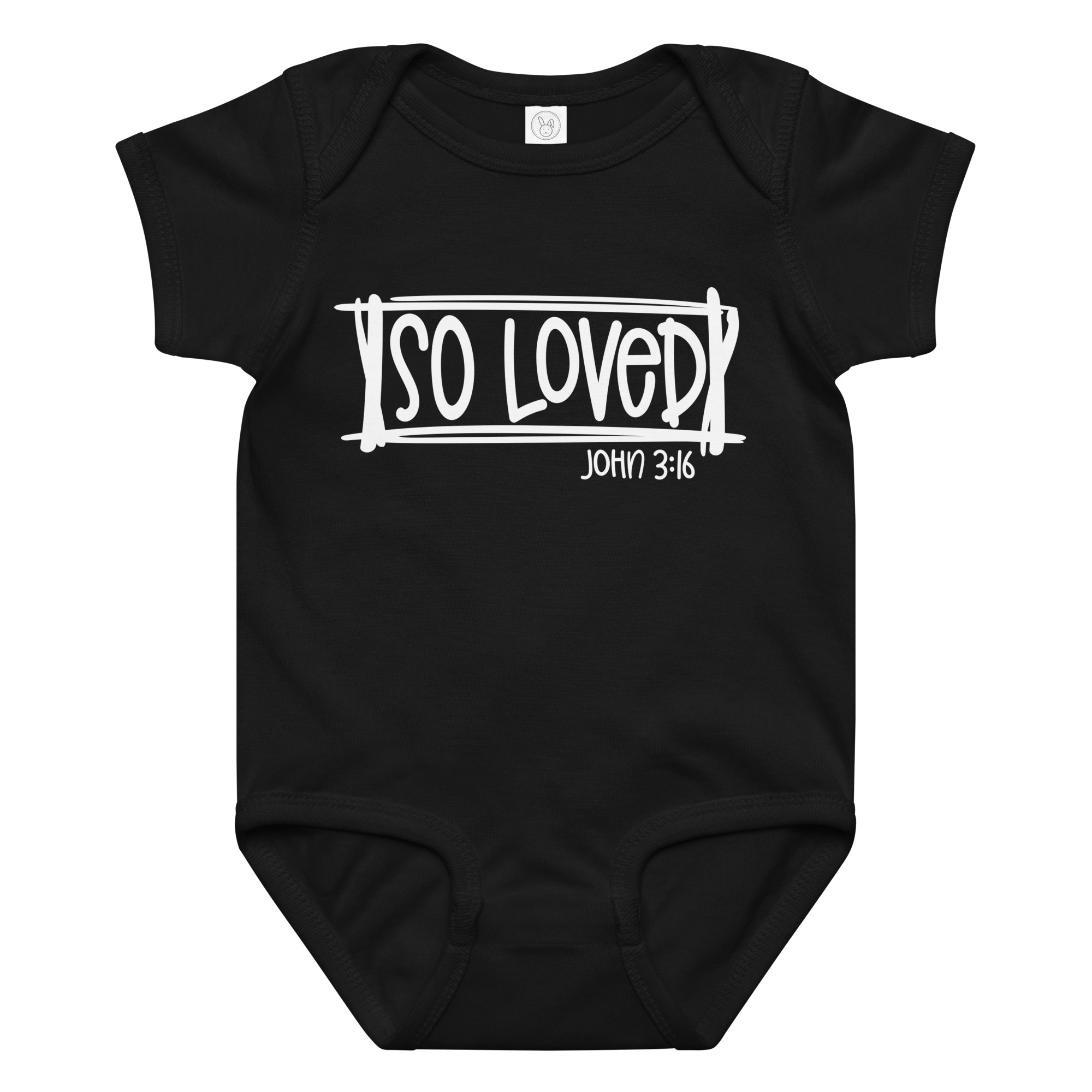 Celebrate the truth of Godβs love with this So Loved Christian baby onesie, inspired by the powerful message of John 3:16. Every child is deeply loved and treasured by God from the very beginning. This faith-filled design reminds families of the incredible love that surrounds their little one. A beautiful way to share a message of faith and hope.