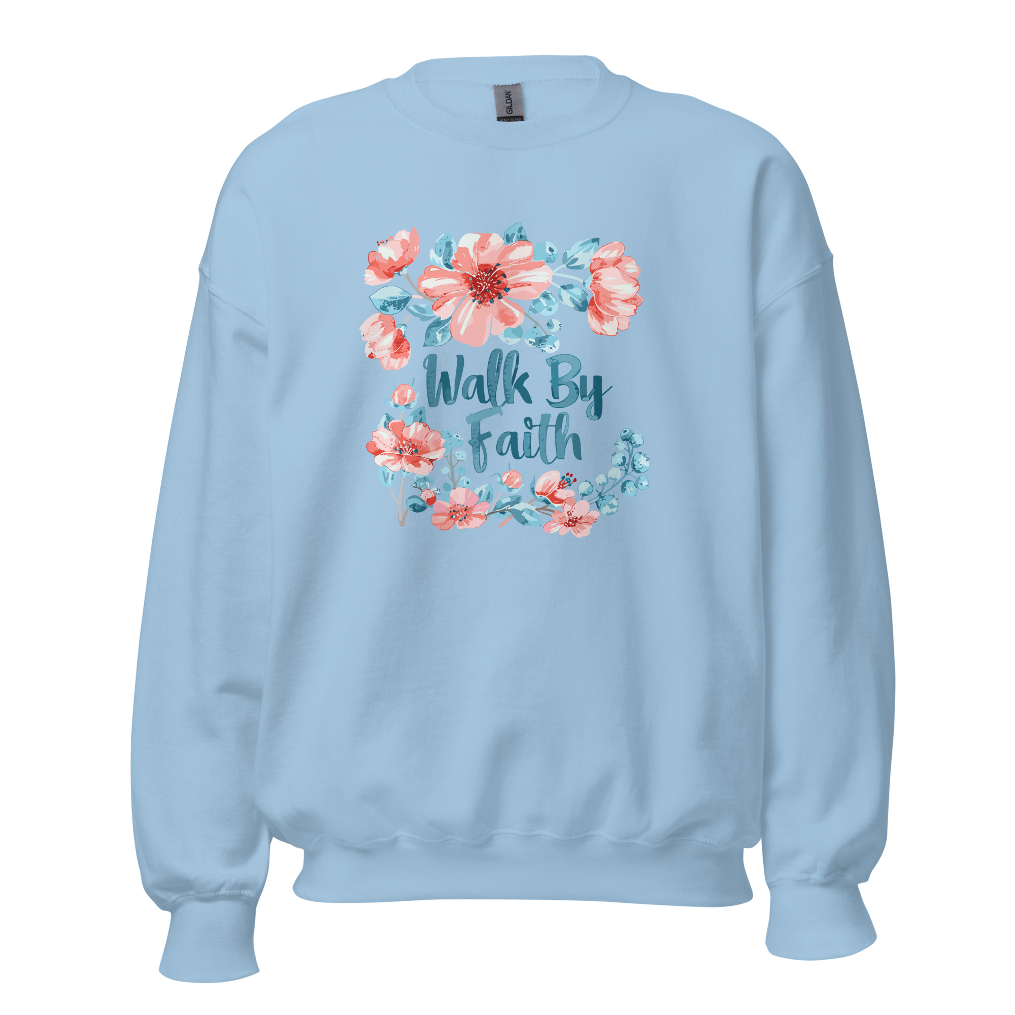 Step out in style and conviction with our “Walk by Faith” sweatshirt. Its uplifting message encourages you to embrace life with unwavering belief and trust. This sweatshirt is a reminder to keep moving forward with faith as your guide.